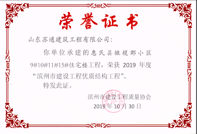 山東蘇通建筑工程有限公司,創(chuàng)建于2009年8月。目前擁有房屋建筑工程施工總承包壹級(jí)、市政公用工程施工總承包叁級(jí)、水利水電工程施工總承包叁級(jí)資質(zhì),同時(shí)還具有建筑裝修裝飾工程專(zhuān)業(yè)承包貳級(jí)、消防設(shè)施工程專(zhuān)業(yè)承包貳級(jí)、鋼結(jié)構(gòu)工程專(zhuān)業(yè)承包叁級(jí)、建筑機(jī)電安裝工程專(zhuān)業(yè)承包叁級(jí)等專(zhuān)業(yè)承包資質(zhì)。 公司總部坐落于山東省濱州市濱城區(qū)黃河十二路877號(hào),現(xiàn)有辦公面積約2000平方米,機(jī)構(gòu)設(shè)黨支部工會(huì)辦公室、總經(jīng)理辦公室、綜合辦公室、工程管理部、經(jīng)營(yíng)預(yù)算部、資產(chǎn)財(cái)務(wù)部、材料設(shè)備部、運(yùn)行管理部、法律事務(wù)部等多個(gè)職能部門(mén)。公司管理體系已經(jīng)通過(guò)了GB/T 19001及GB/T 50430質(zhì)量管理體系、GB/T 24001環(huán)境管理體系(EMS)、GB/T 28001職業(yè)健康安全管理體系(OHSMS)等體系的認(rèn)證。 公司承建完工了濱州市建大教師之家、建大清怡苑、香格里拉水岸綠城住宅小區(qū)、雙泰建大城、曲阜崇德公館住宅小區(qū)、北海新區(qū)御景藍(lán)灣住宅小區(qū)、沾化德榮國(guó)際華城住宅小區(qū)、惠民橄欖郡住宅小區(qū)等工程項(xiàng)目,目前在建工程項(xiàng)目有:濱州市頤高國(guó)際電子商務(wù)產(chǎn)業(yè)園住宅小區(qū)項(xiàng)目、濱州市東盛國(guó)際項(xiàng)目、高新區(qū)建大中央華府住宅小區(qū)項(xiàng)目、濱州市融匯新里程住宅小區(qū)項(xiàng)目、濱州市建大秦皇壹號(hào)住宅小區(qū)項(xiàng)目、濱州市森林花...